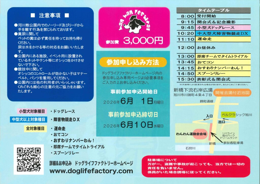 この度、当社が管理運営を行う「新橋下流右岸広場」にて、愛犬と飼い主様が主役のスポーツイベント『わんわん運動会2026』が開催されます!