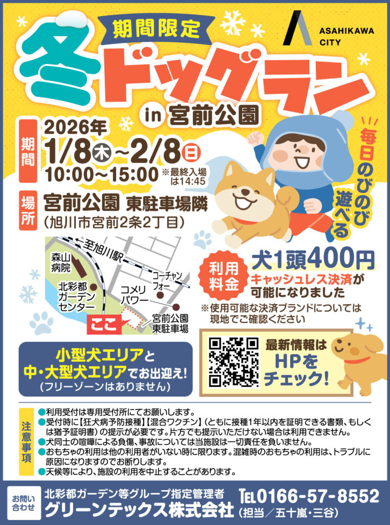 当社が管理を行う旭川市宮前公園 冬ドッグランを、